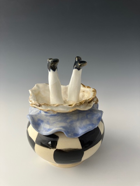 Artistically, I enjoy the vibrant colors of the Florida landscape and the Caribbean ocean, usually using oil paint or watercolors to render my scenes. I originally started painting so that I could paint successfully on my pots. Now I seek to integrate the Florida flora and fauna into my pottery designs using underglazes and scraffito. In pottery, my favorite form is the bowl but a challenge I willingly accept is to make the perfect cup.