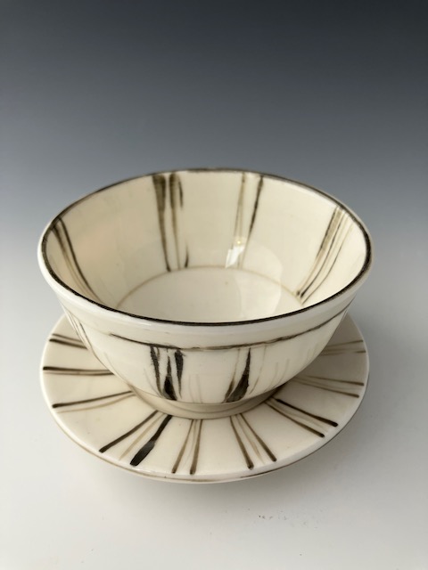 - Porcelain cup and saucer with black stripes